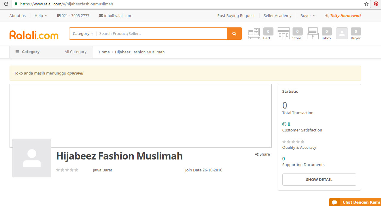 Setelah memasukkan data diri, kita tinggal menunggu approval untuk membuka toko dari ralali.com |