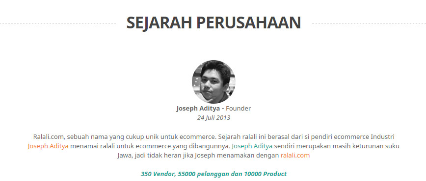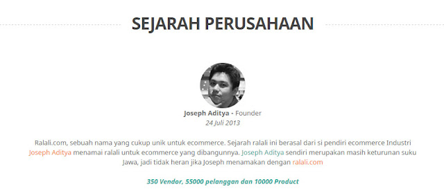 Dan yang tak kalah penting, ralali.com ini juga didirikan oleh anak muda Indonesia pada tahun 2013, namanya Joseph Aditya.