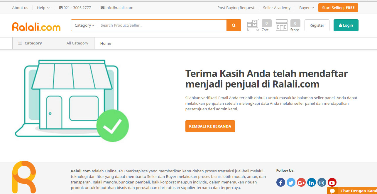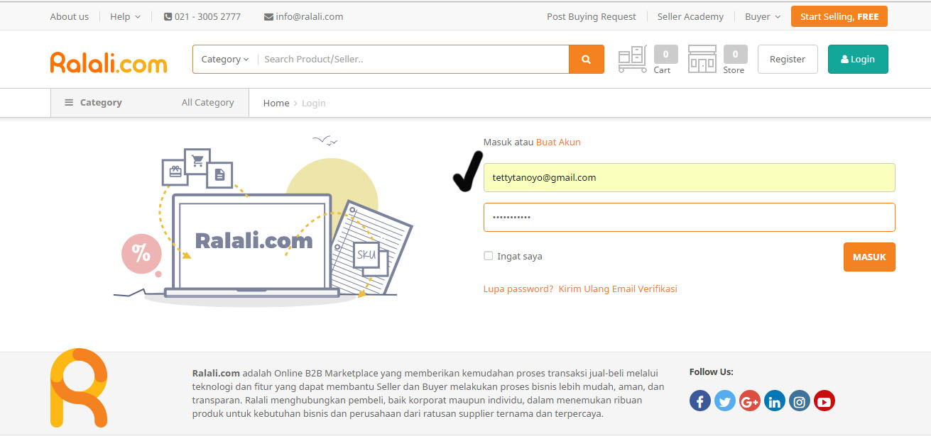 Setelah melakukan verifikasi, barulah kita bisa masuk ke akun kita di ralali.com