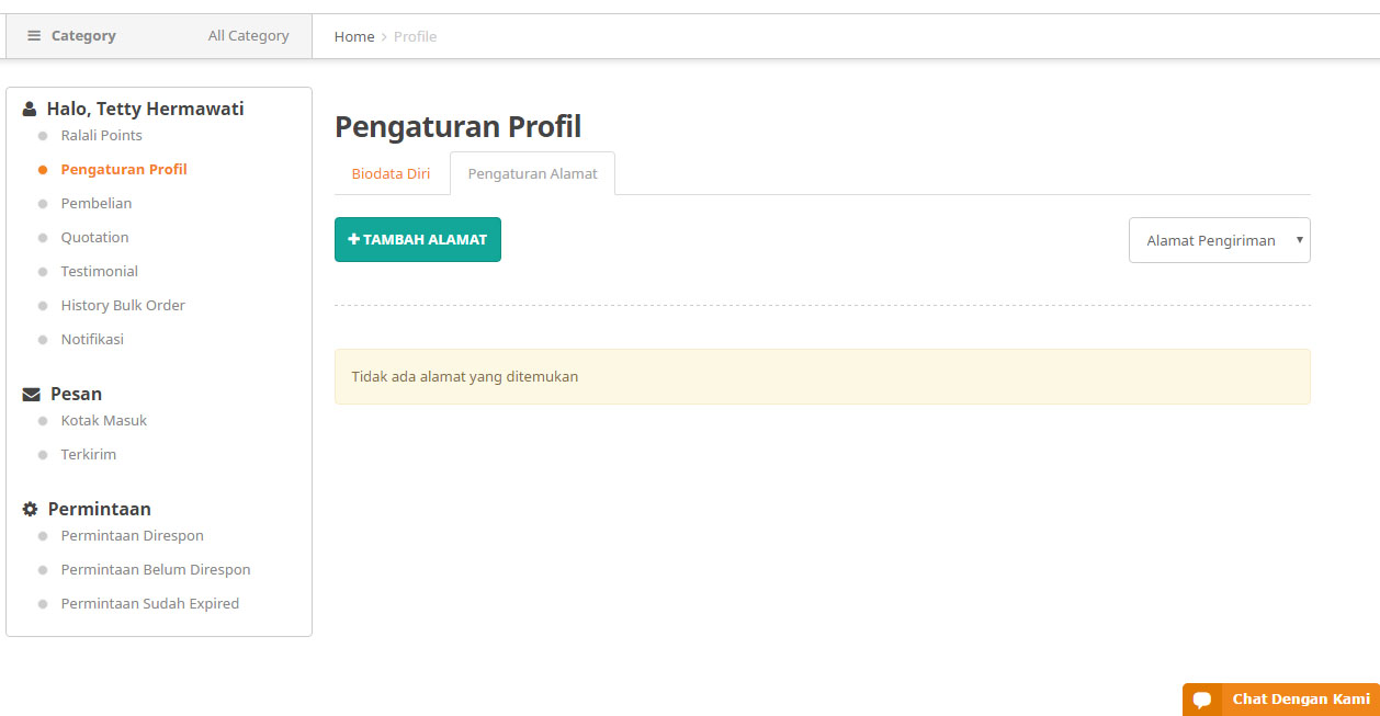 Kita bisa menambahkan/mengedit informasi diri kita di akun ralali.com. Seperti menambahkan alamat, scan KTP, dan lainnya. |