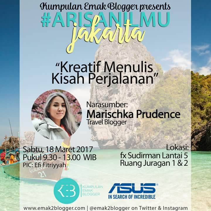 dengan Narasumber Kak Marischka Prudence yang memang seorang travel blogger