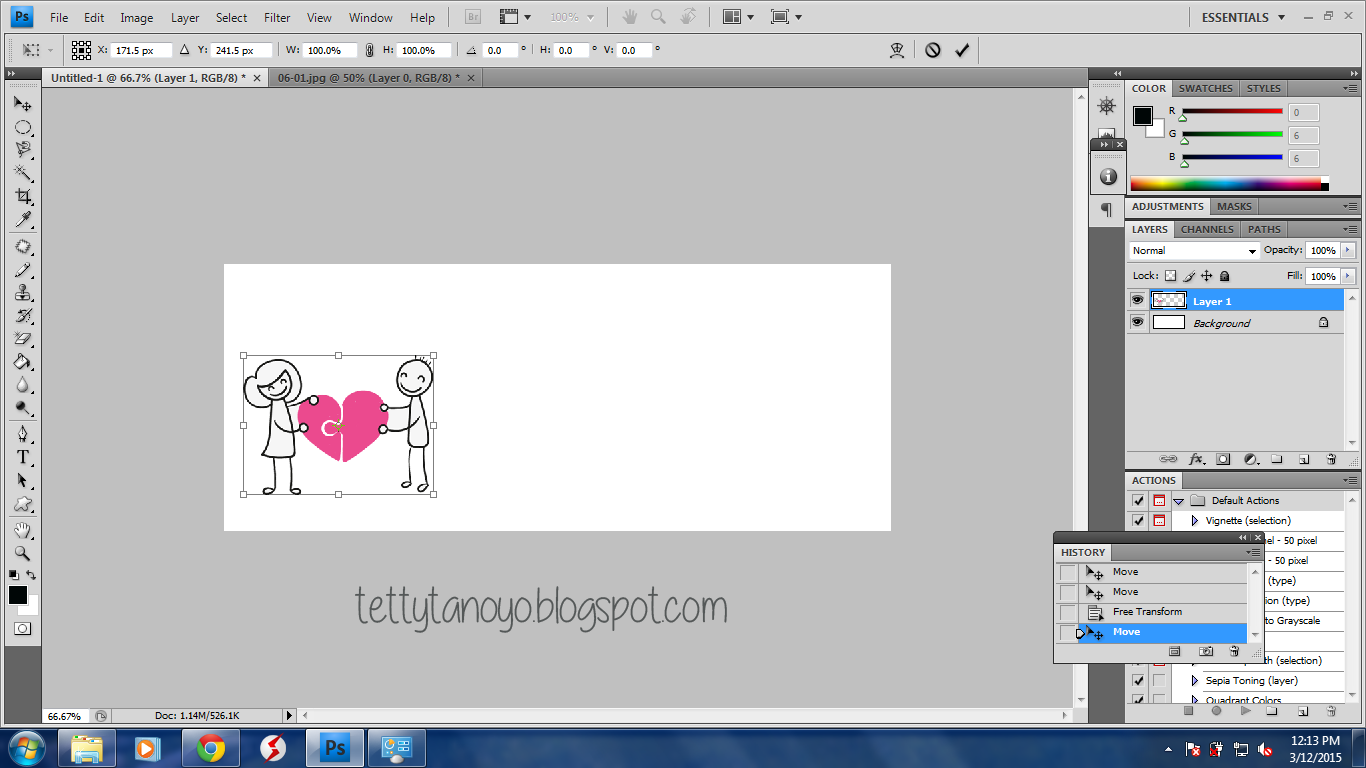 Kemudian, DRAG/SERET gambar yang sudah dicrop dan dihilangkan backgroundnya dengan menggunakan MOVE TOOL.