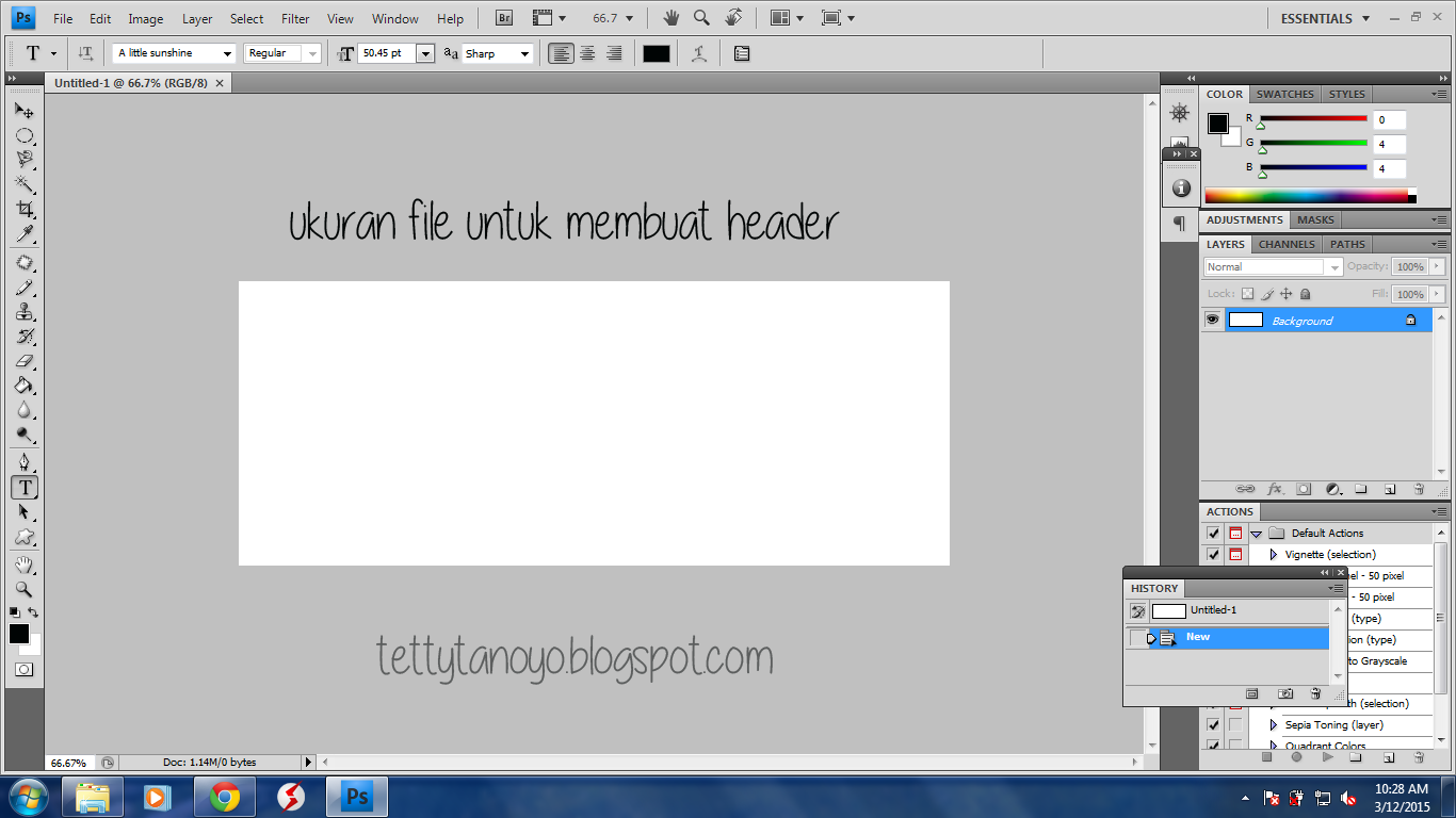 Cara ini juga bisa digunakan untuk membuat profil, banner, iklan, atau apapun yang ingin kita 'tempel' pada blog, misalnya pada sidebar. Kita tinggal mengubah ukuran file pada saat kita membuat FILE>NEW.