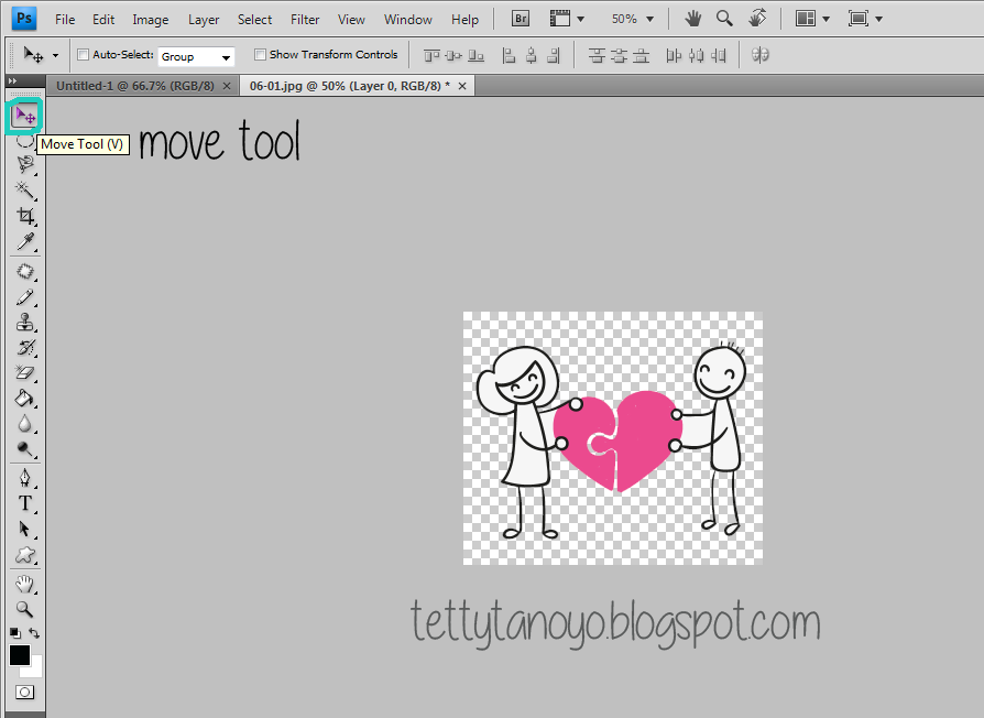 TEKNIK MENDRAG/MENYERET GAMBAR adalah klik gambar dengan Move Tool + klik kiri.