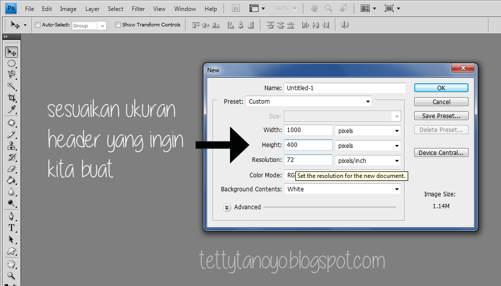 Sesuaikan UKURAN WIDTH dan HEIGHT dengan ukuran HEADER yang ingin kita buat untuk Blog.