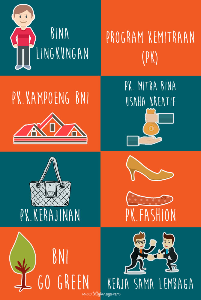 Program kemitraan terdiri dari program kampoeng BNI untuk memberdayakan ekonomi kreatif masyarakat pedesaan, membawa UMKM Indonesia Go Internasional, melakukan pendampingan untuk meningkatkan kemandirian dan ketahanan ekonomi masyarakat khususnya industri kreatif.