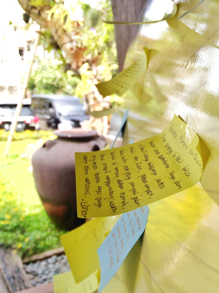 | Sebelum acara dimulai, kami para Emak Blogger diminta menuliskan 'Bagaimana cara mengisi kebersamaan bersama anak di rumah' |