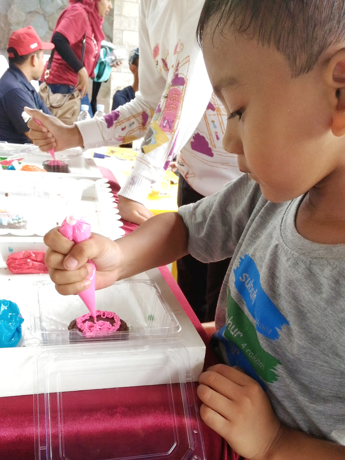 | Anak-anak juga melakukan kegiatan menghias Lotte Choco Pie dengan beragam topping |