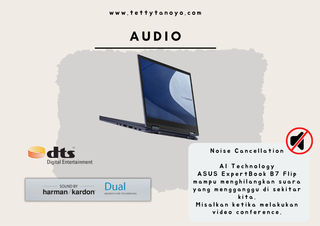 4. Nyaman online meeting seharian! ASUS ExpertBook B7 Flip (B7402) memiliki teknologi Two-Way AI Noise-Cancelling. Teknologi ini